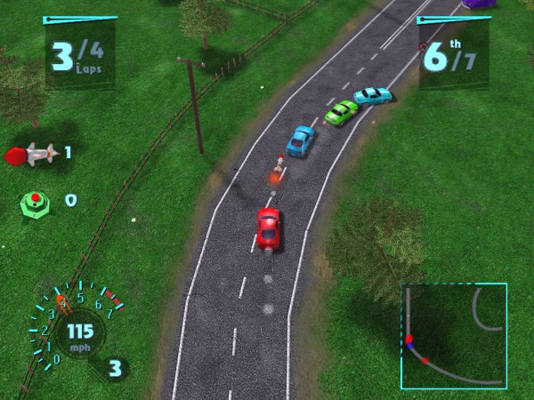 W tej grze możemy się ścigać. Poza szybkimi samochodami do dyspozycji mamy możliwość utrudniania jazdy przeciwnikom poprzez sterowane rakiety i miny.